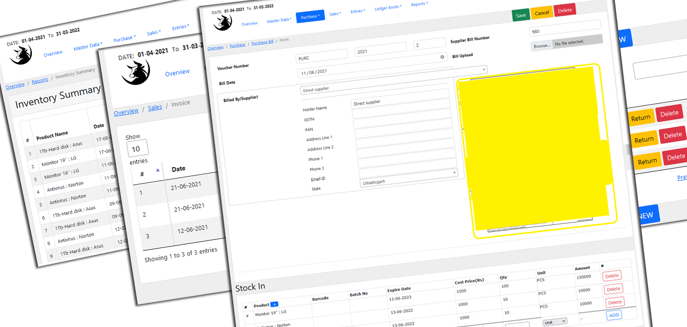 Track stock levels, purchase entries, low-stock alerts & manage inventory in real time with complete accuracy.